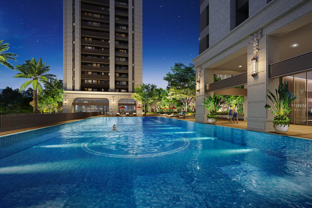 2247坪廣闊大基地開發,打造巴洛克美學建築,並以對稱線條映襯古典優雅氣韻。